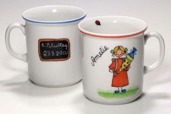 Becher für den Schulanfang mit Schultafel auf der Rückseite.